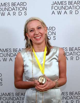 The crowd also roared when Gabrielle Hamilton of Prune (left) was announced as “Best Chef: New York City”. Wearing a long, white, sleeveless satin dress, she was charmingly humble: “I still identify with being a dishwasher—not a ‘chef’”. About her win, Hamilton joked that all it took was “opening a can of sardines, a box of Triscuits and calling it a ‘signature dish’”.
