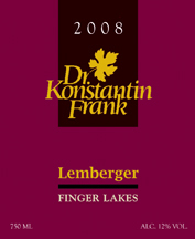 Germanic varietals: the 2010 Grüner Veltliner and the Dr. Frank Celebre Rose (Pinot Meunier) Sparkling Wine for the reception, and the 2010 Semi-Dry Riesling and the 2008 Lemberger (left, a.k.a. Blaufränkish), a peppery, medium-bodied red, with the luncheon.