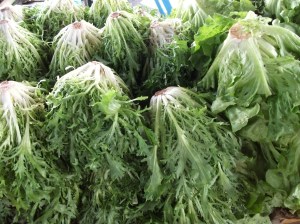At S. & S. O.’s stand, I have to muscle my way through a queue of customers fingering tender, leafy heads of lettuce. Red-leaf, Bibb, romaine are my go-to favorites. Priced at $1.25 a generous-sized bunch, it’s a steal compared to supermarket greens, which can cost you four times that amount. Freshly plucked, these lettuces are still alive with color and taste. I can never resist the scallions either. Several feet long, sometimes,