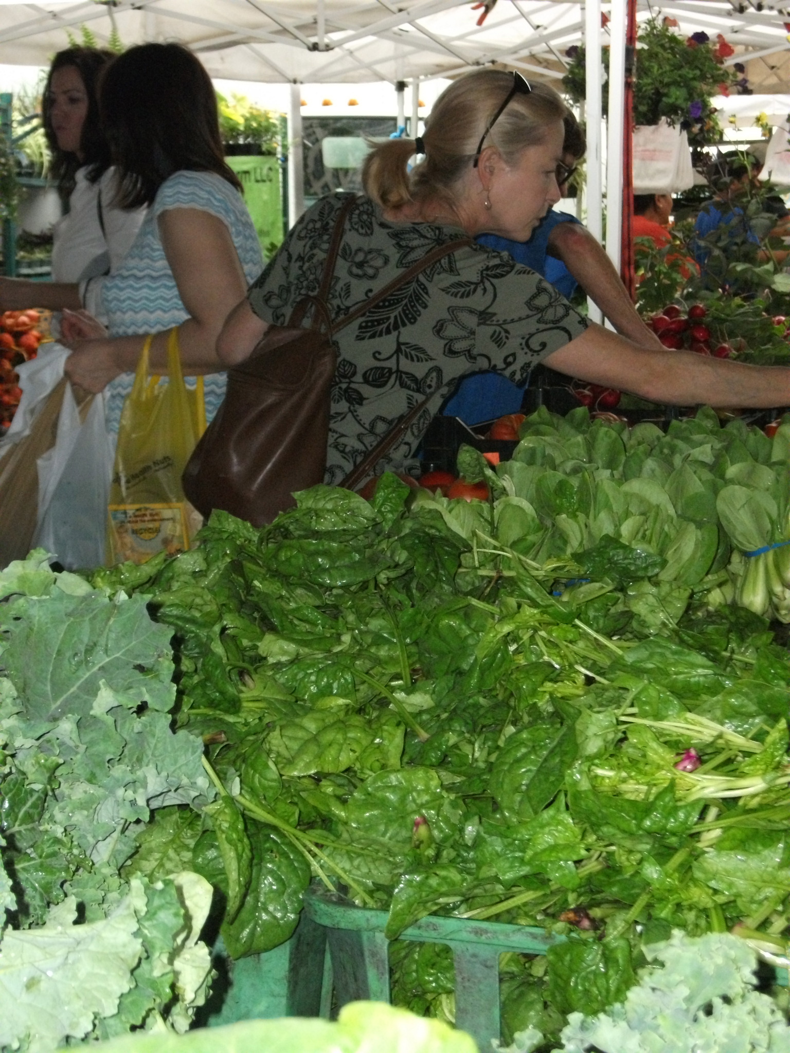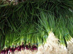 with clumps of black dirt still clinging to the bulb, they impart a spicy bite. They’re a far cry from stingily apportioned store-bought scallions that are limp, pale and impotent flavorwise. Like a shop-aholic gone mad, I always leave, laden with bulging bags of green loot. But having spent under $20, it’s a rush I can afford to indulge. And I have produce that lasts at least three days.