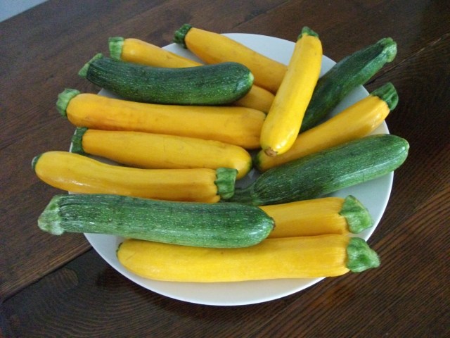 Summer squash: I pick my way through the large, thick ones (because they’re old and tough) in search of “baby” yellow zucchini that’s small, thin and unblemished.