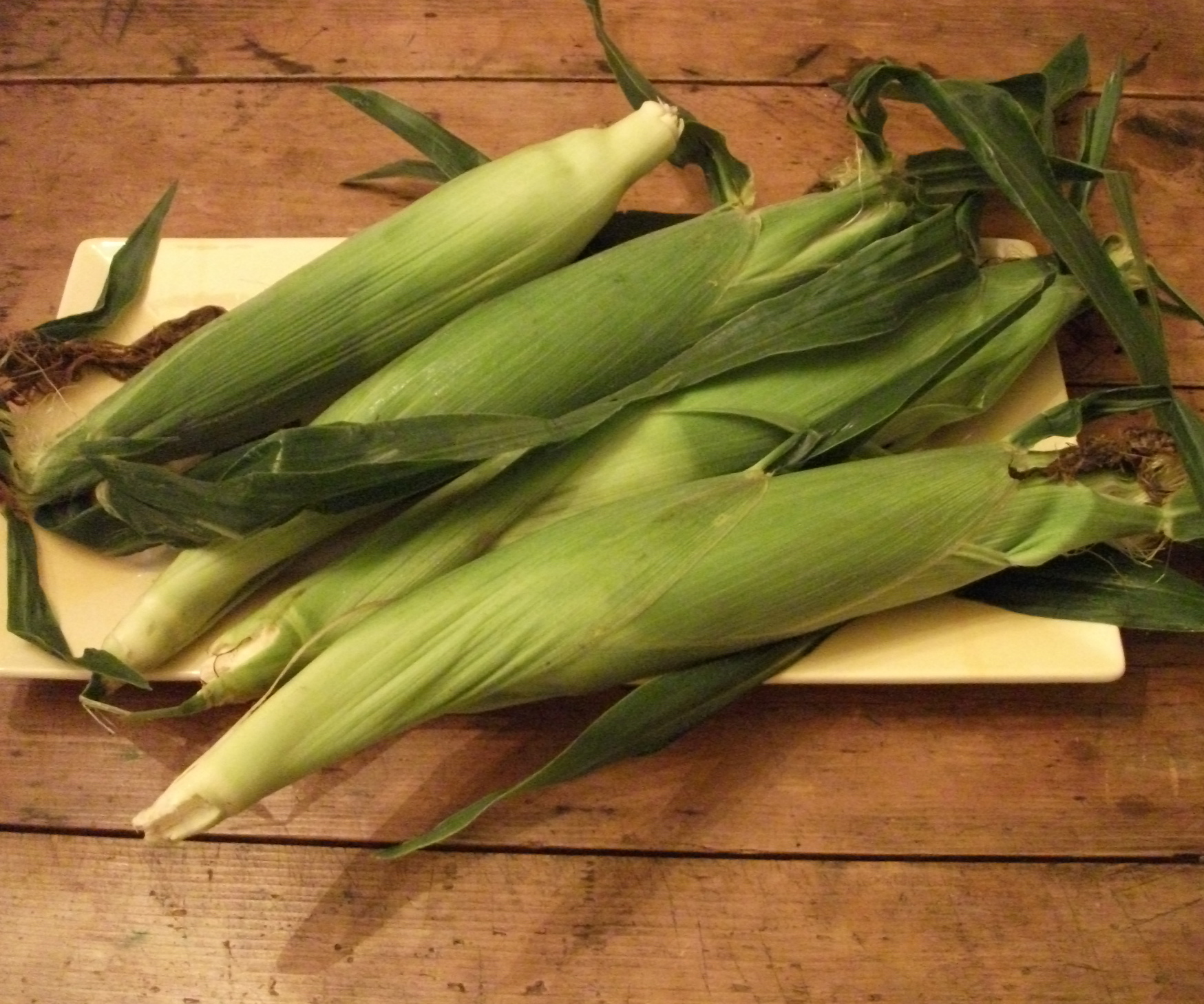 Sweet corn: when choosing, I look for those telltale signs of freshness: an abundance of slightly sticky, golden-brown silks (the strands attached to the husk), a husk that feels plump and full, and a stem that feels moist, yet firm.