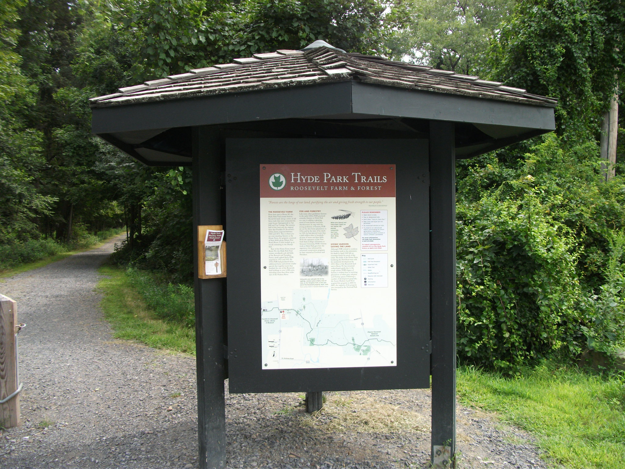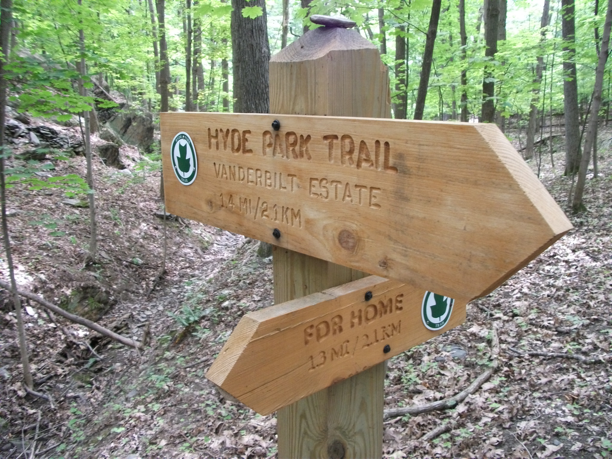 A 16-mile trail system, encompassing local parks and a nature preserve, wends through the Town of Hyde Park. Superimposed upon this network of trails, however, is “The Hyde Park Trail”, which refers specifically to the nine-mile through-trail, linking several National Historic Sites: Vanderbilt Mansion; the homes of Franklin D. Roosevelt and Eleanor Roosevelt (Val-Kill), FDR’s Top Cottage and Roosevelt Farm Lane.