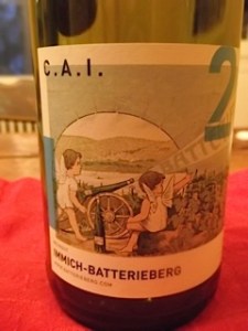 Fast forward to the present, Immich-Batterieberg has new ownership (since 2009), under the direction of cellar-master Gernot Kollman. Kollman’s preference, and the tradition of the estate’s vineyards, which include a large proportion of old, ungrafted and low-yielding vines on steep slate slopes, is dry Riesling, in a “pure, unadorned and rather powerful style”. The 2010 Riesling C.A.I. certainly reflects this philosophy, despite 2010 having been one of the few difficult vintages in Germany over the last decade.