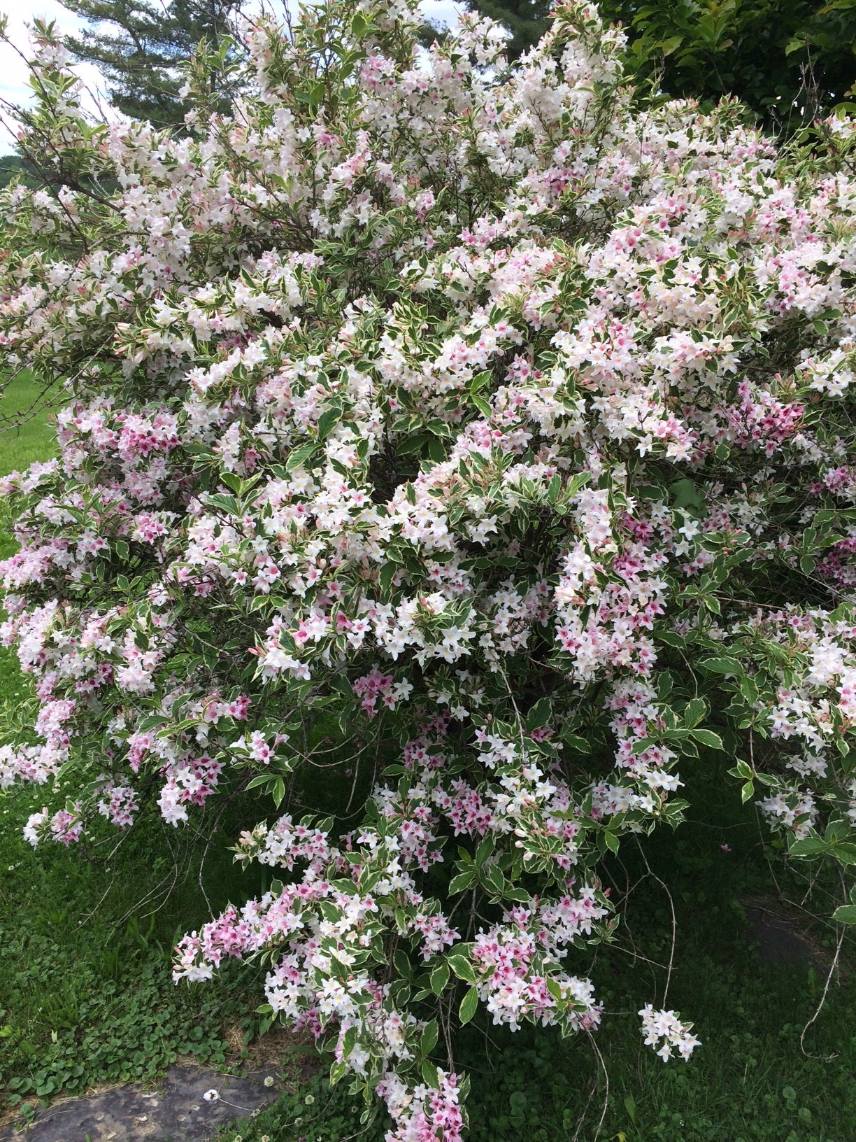 And the belle of the ball for the moment, our ancient, variegated Weigela…